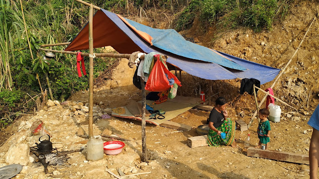 Quand nous l’avons rencontré quelques semaines plus tard, M. Vang avait démonté son ancienne maison et la construction de la nouvelle était lancée. En attendant d’être relogés, le couple et ses 3 enfants vivaient sous une simple toile sur le chantier.
